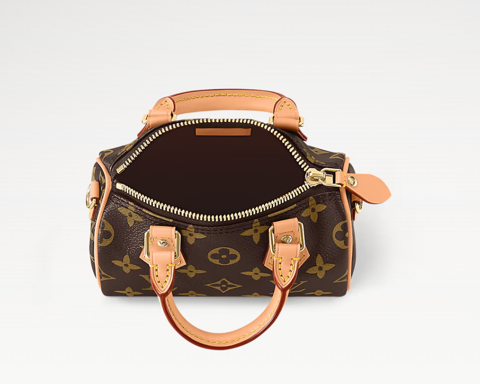 This elegant handbag features a classic monogram design paired with luxurious gold accents, giving it a sophisticated and timeless look. Its structured shape and compact size make it perfect for carrying daily essentials while adding a refined touch to any outfit. Crafted with high-quality materials, it includes a sturdy top handle and a stylish chain-detail strap for versatile wear. A chic and iconic piece that elevates any wardrobe.